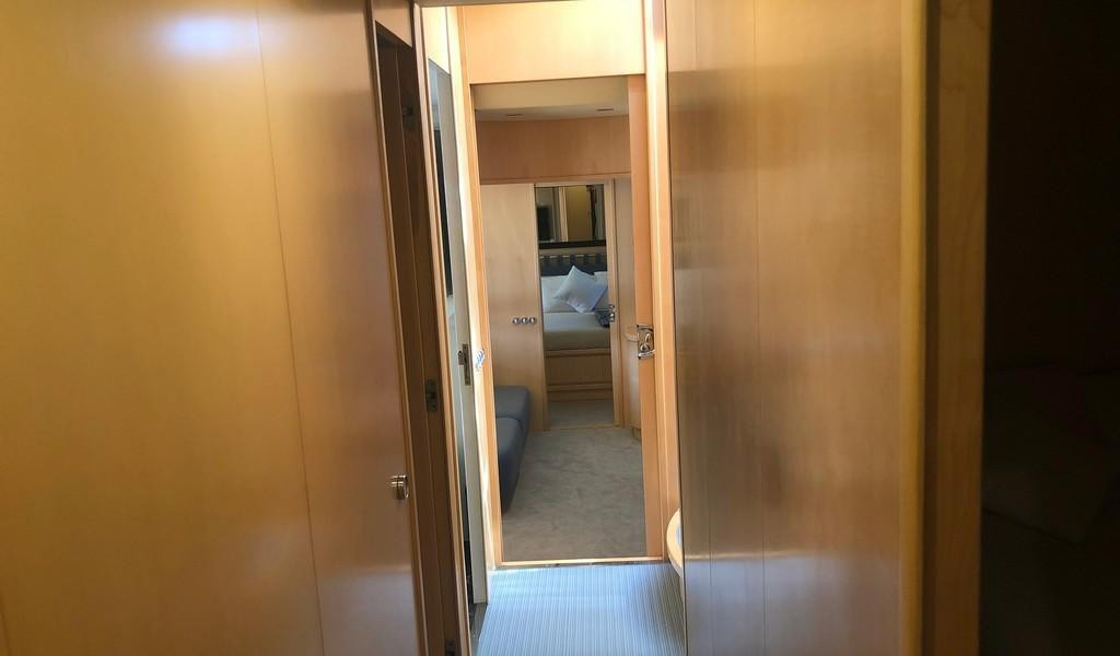 Con dos motores MTU de 2000 HP, alcanza una velocidad máxima de 30 nudos. El equipo de navegación incluye radar, GPS y piloto automático. La cubierta principal cuenta con un diseño Sideck abierto, y el salón ofrece una disposición versátil con techo retráctil. El yate tiene cinco cabinas, con capacidad para hasta 11 personas, incluida una suite principal de manga completa con cama king, tocador, sofá y armario, además de una gran zona de solarium y área de descanso en la popa y un espacioso solárium en la proa. El área para la tripulación está diseñada para tres personas, y la cocina está bien equipada, con un refrigerador nuevo. También incluye un amplio garaje, tender, altavoces Void, potentes amplificadores y conexión para mesa de mezclas DJ.