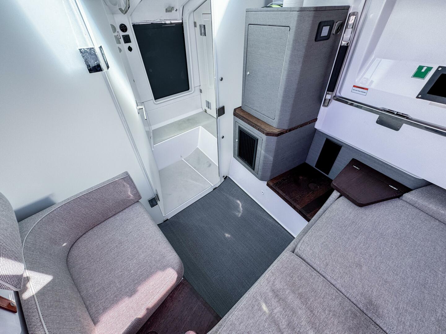Featuring a brilliant Miami Blue hull with White Mercury 350 V10 Verrados, equipped with 1300 AH Lithium ion battery. Enjoy convenience and comfort with features like the bow thruster, autopilot, enclosed head with freshwater shower. This model also comes with a live well and ski arch for all kinds of fun on the water.