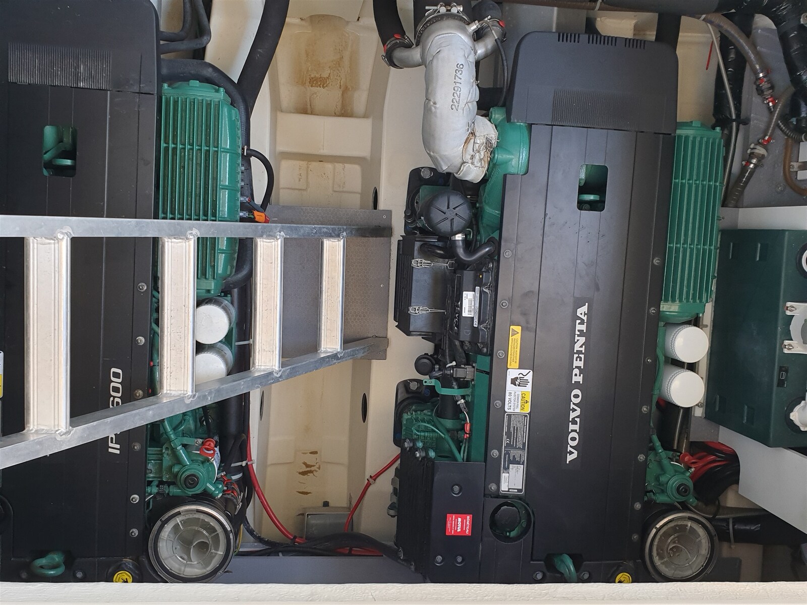 Fume/Gas Detector, 2 Engine Alarm, Bilge Alarm, Water pressure pump, Deck Shower, Twin Steering, Headlights fixed on the stem, Electric Flaps, 2 Flaps Indicators, Anchor Chain Washdown, Washbasin in the cockpit, Courtesy Lights, Gangway, Platform, Automatic Bilge Pump, 2 Electric Bilge Pump, Manual Bilge Pump, Entry door, Teak Cockpit, 2 Shorepower connector (230 V - 50 Hz 63A con cavo di 15m), Water harbor connector system, Electric Windlass, swimming ladder, cockpit table, Living Room Foldable Table, Tender, Horn, Stern Winches, Bow Winches.
