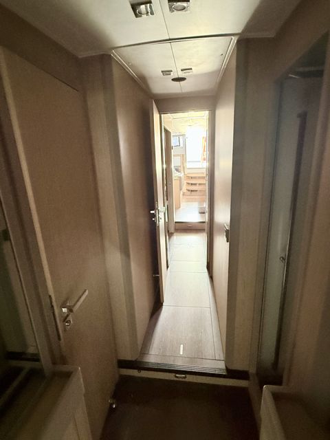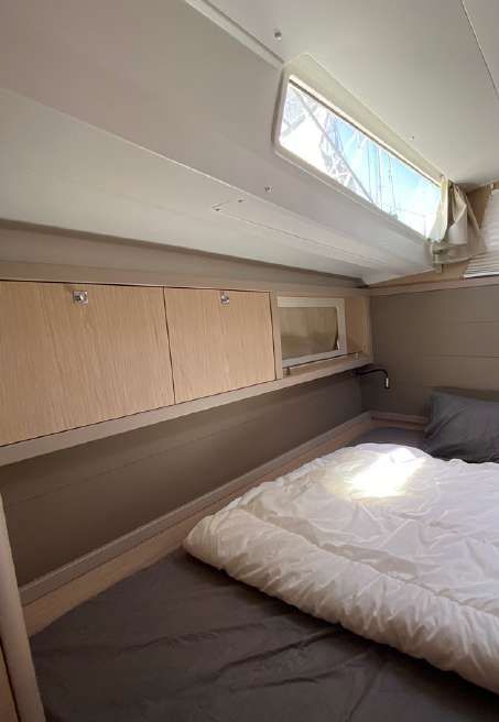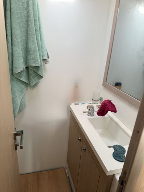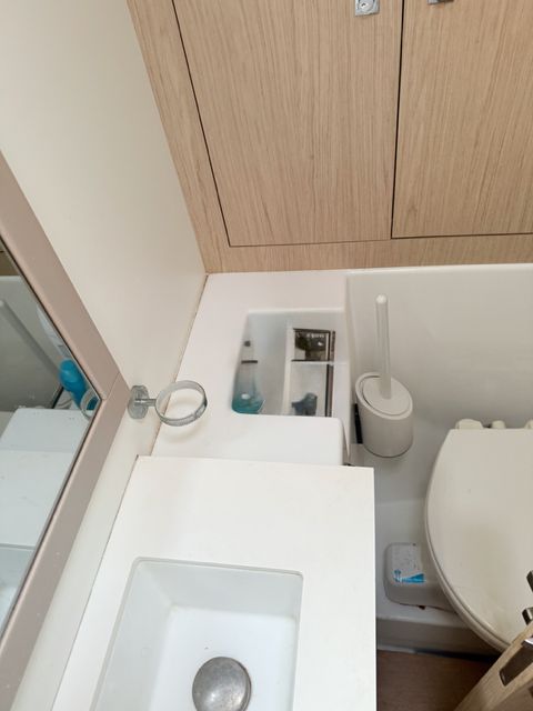 Deux cabines invités (bâbord et tribord), chacune avec salle d’eau indépendante, douches séparées et WC électriques