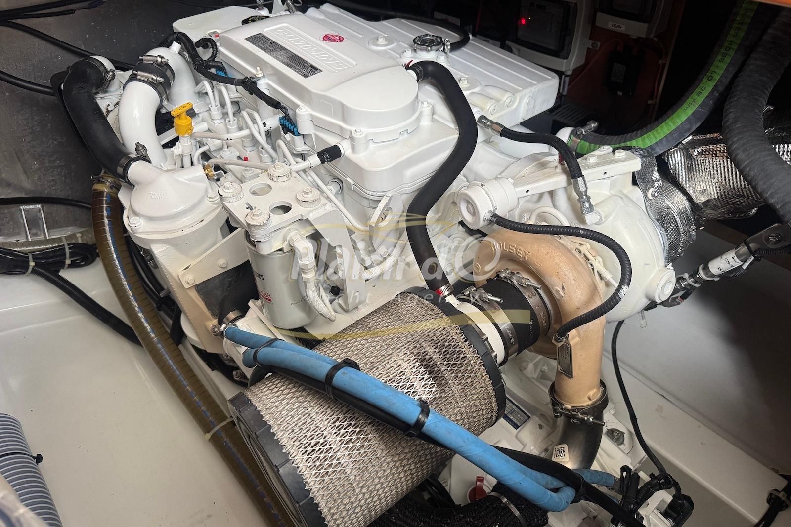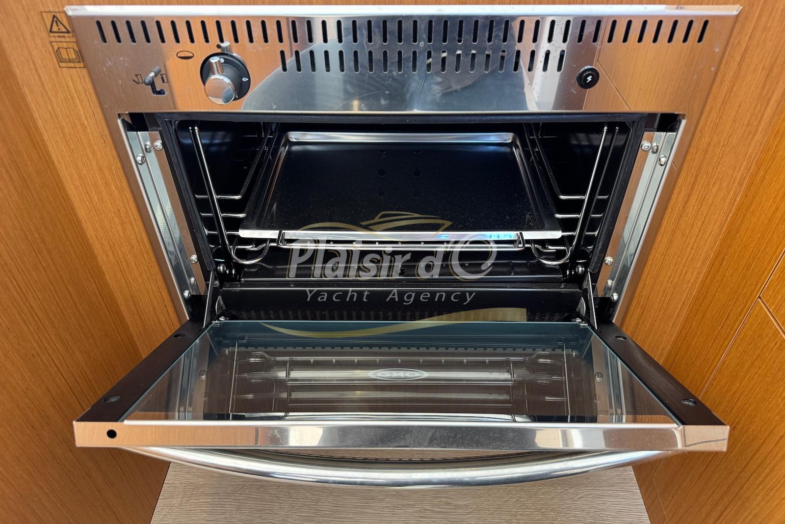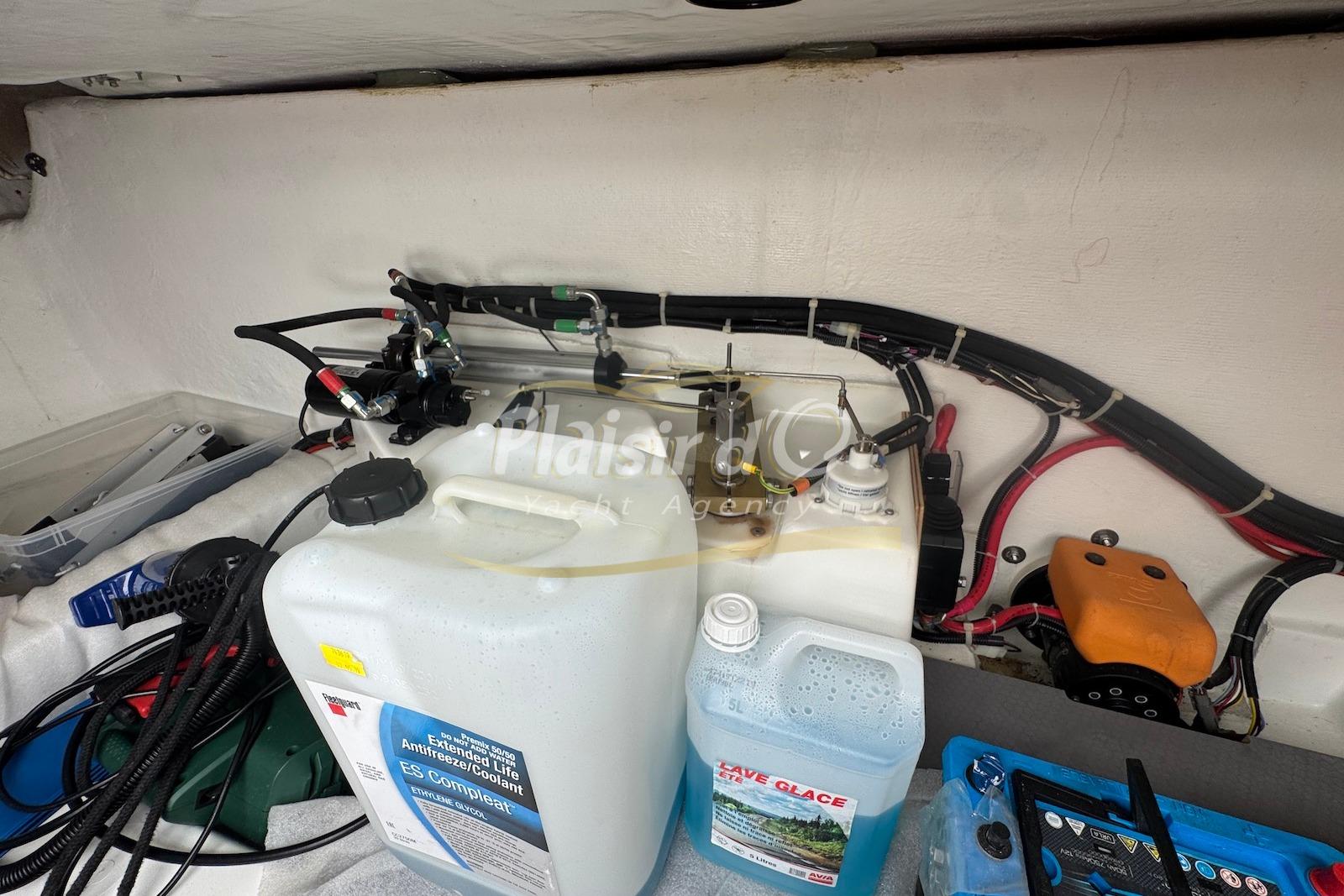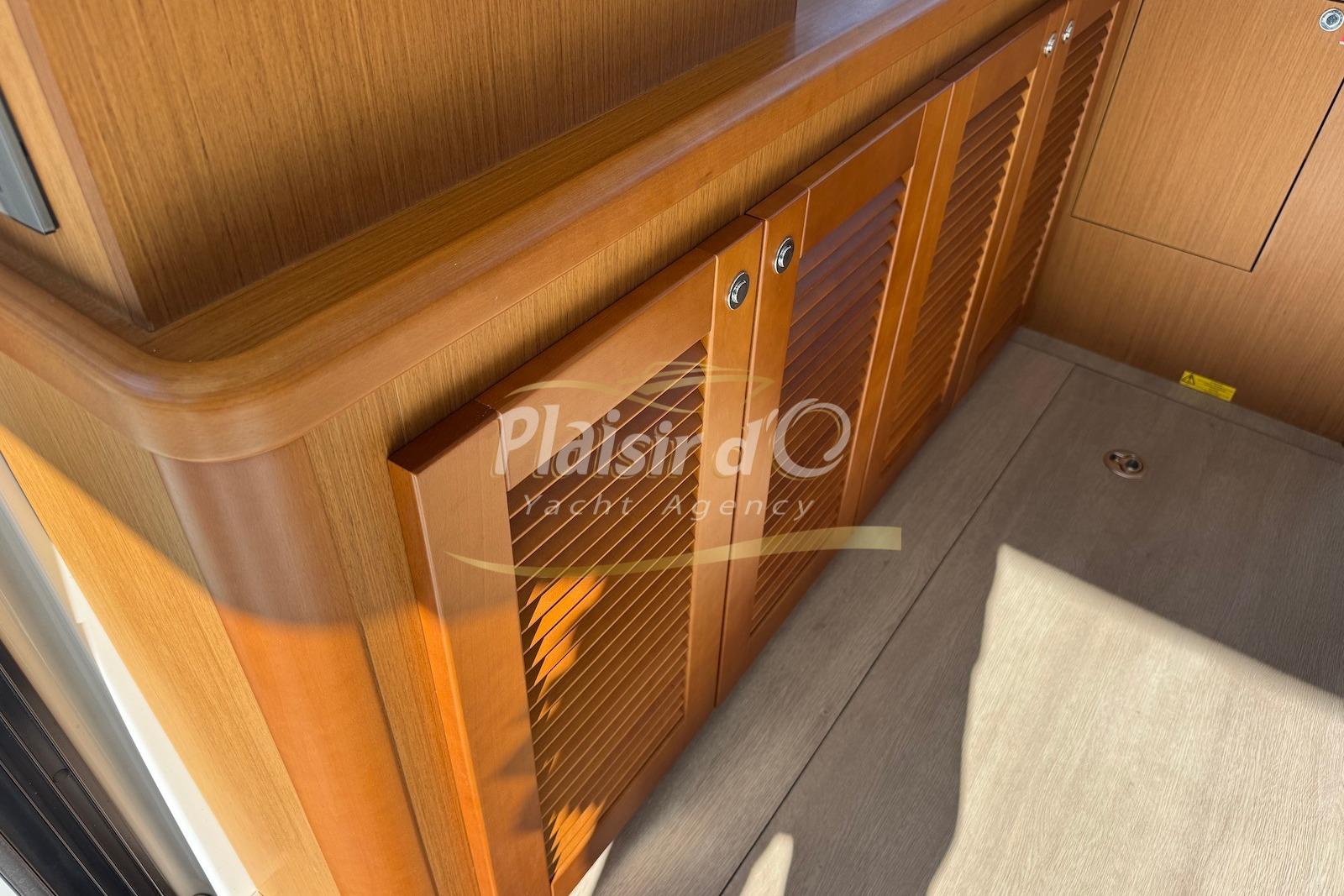 Numerous options : Raymarine electronics (GPS, autopilot, VHF, AIS), audio system, bow and stern thrusters, Opacmar hydraulic gangway, forward and flybridge sunbeds, stainless steel bimini, electric windlass, inverter, battery charger, LED lighting, TV, convertible sofa, cockpit table…