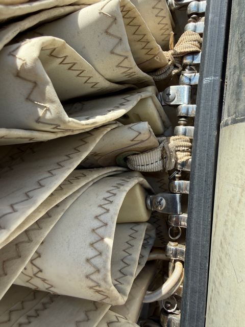 El aparejo incluye un mástil Francespar de 15 metros, jarcia firme ACMO en acero inoxidable, una mayor full-batten en buen estado, un génova de 50 m² también en excelente estado, una trinqueta casi nueva y un tormentín nunca utilizado. Todas las cadeneras son de acero inoxidable y el aparejo está dimensionado para navegación oceánica exigente.