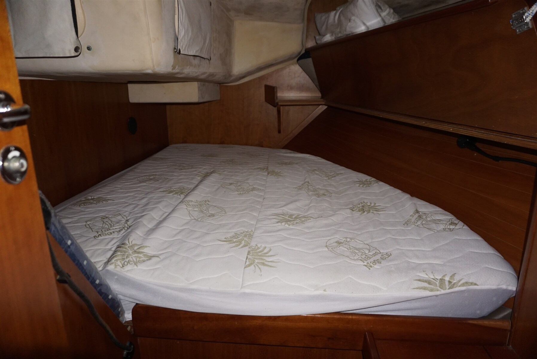 Jib Furling System, Bowsprit, Ball bearing slider mainsail, Lazy Bag, Lazy Jack, Backstay tensioner, Mainsheet traveller, Vang.