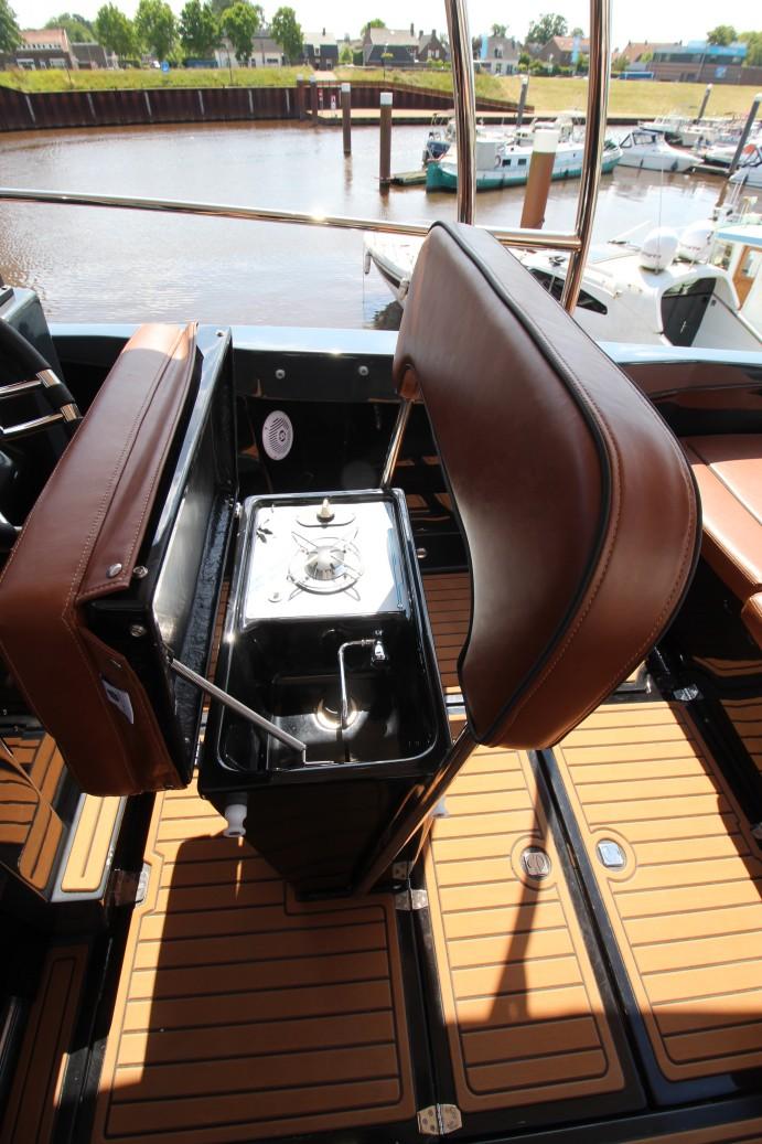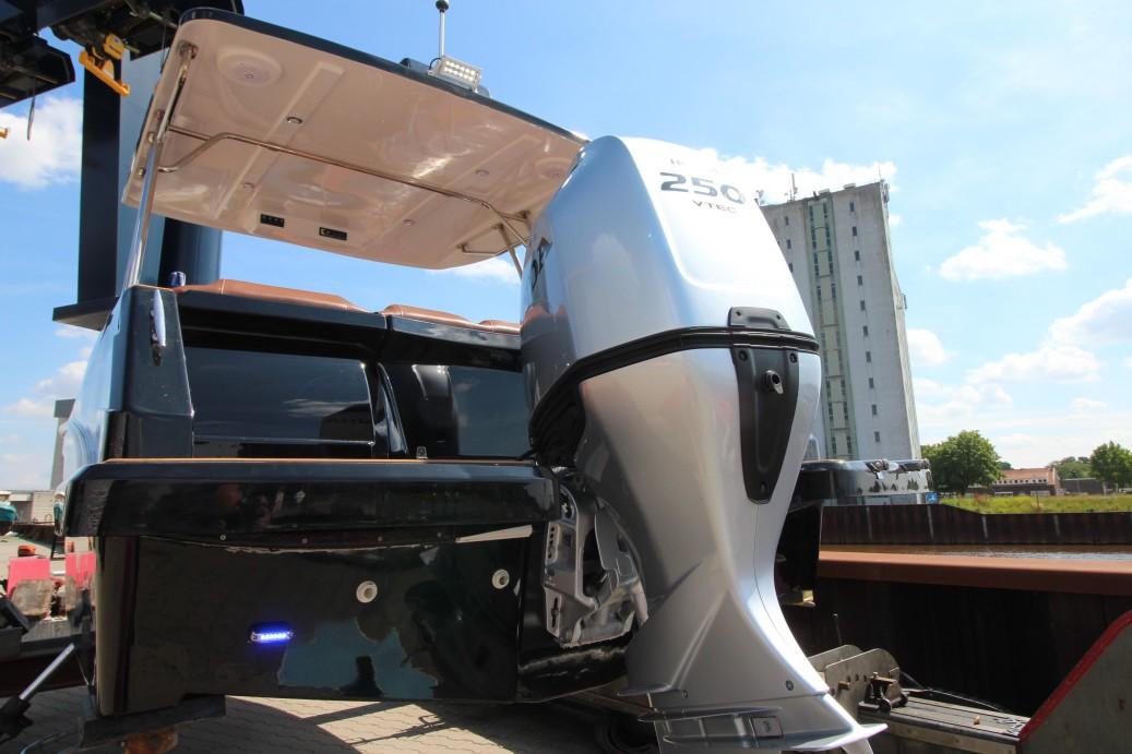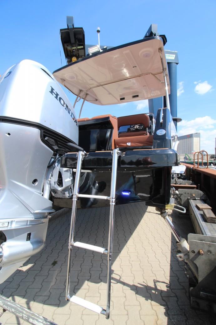 Deze boot is uitgerust met een Honda BF250 buitenboordmotor.