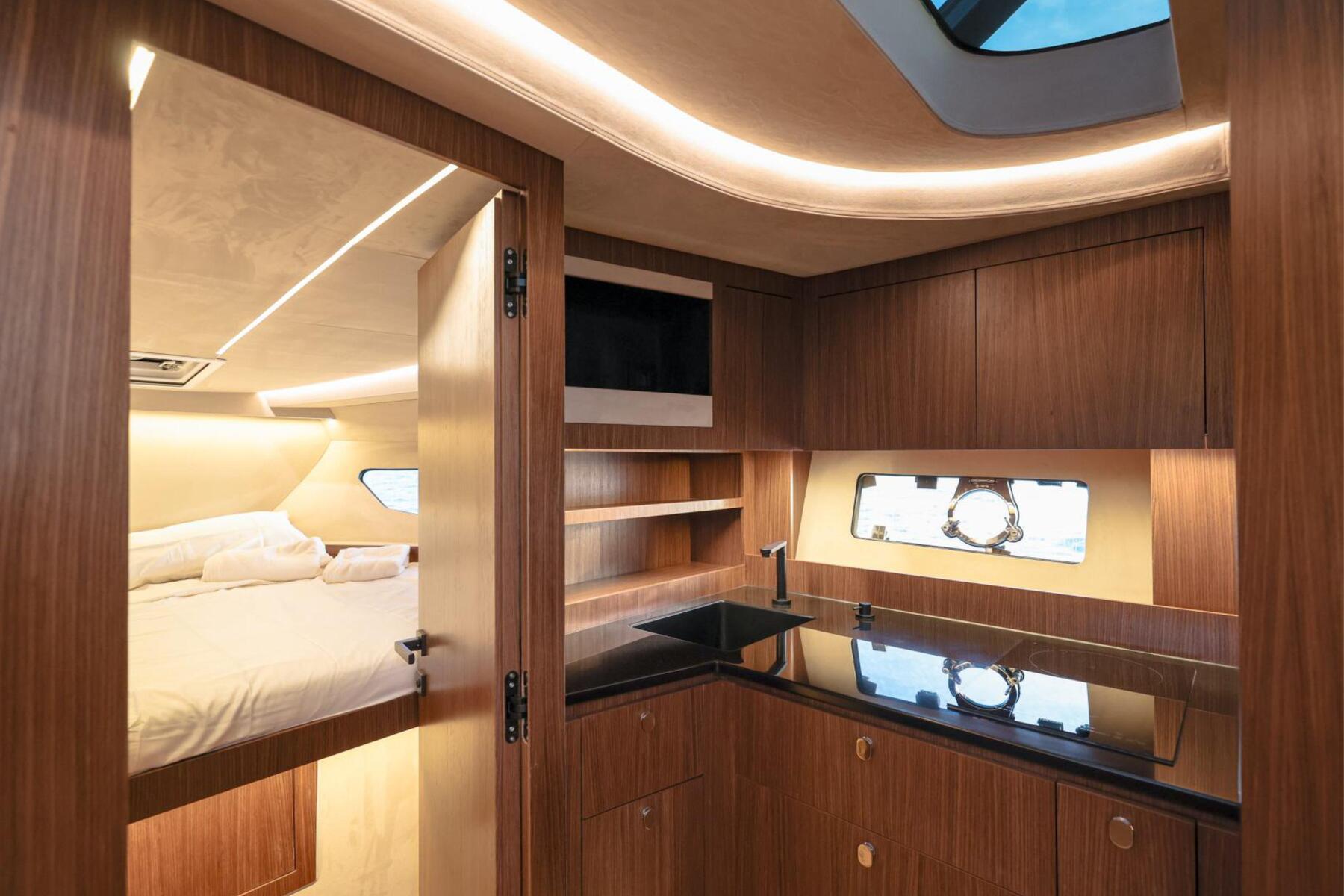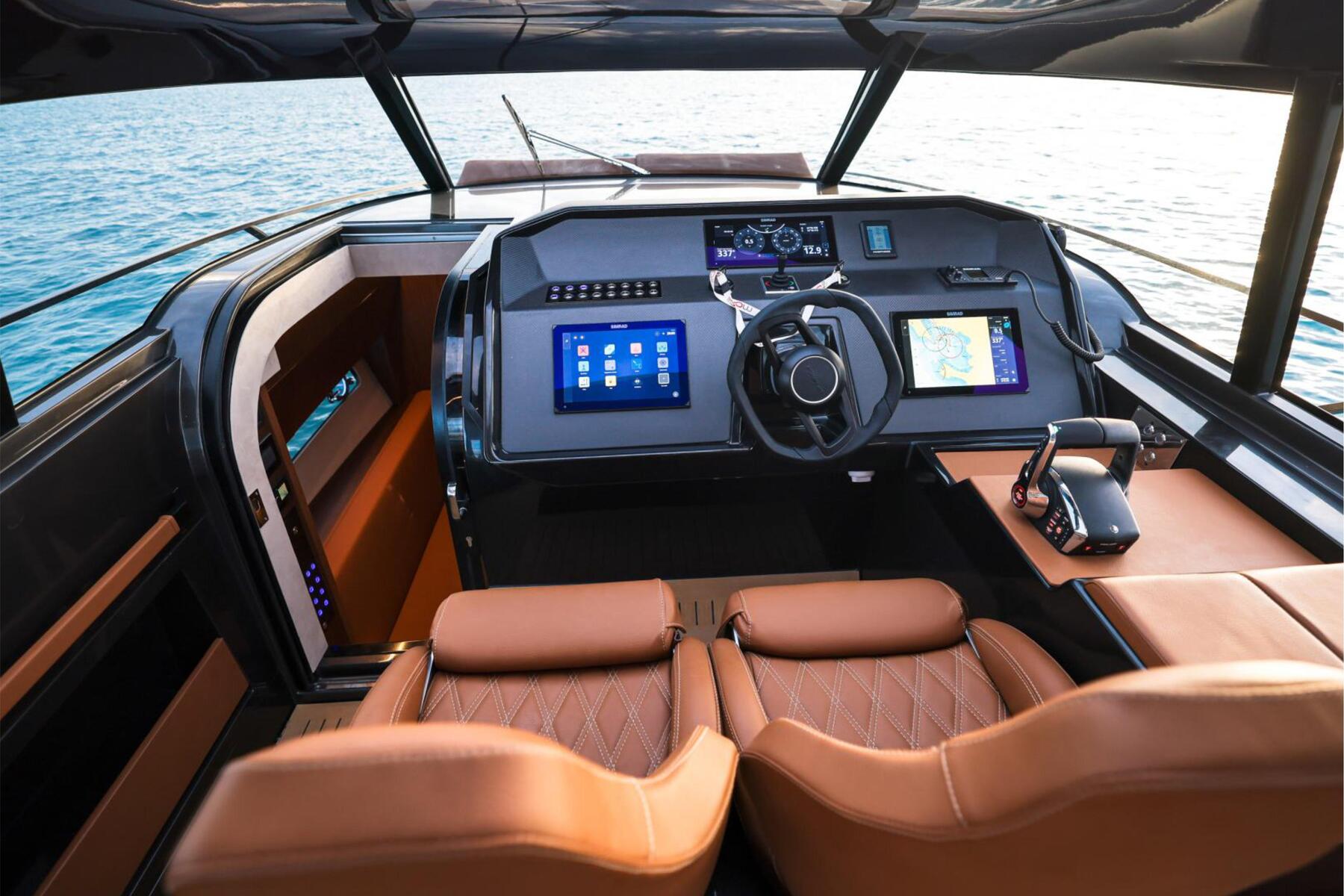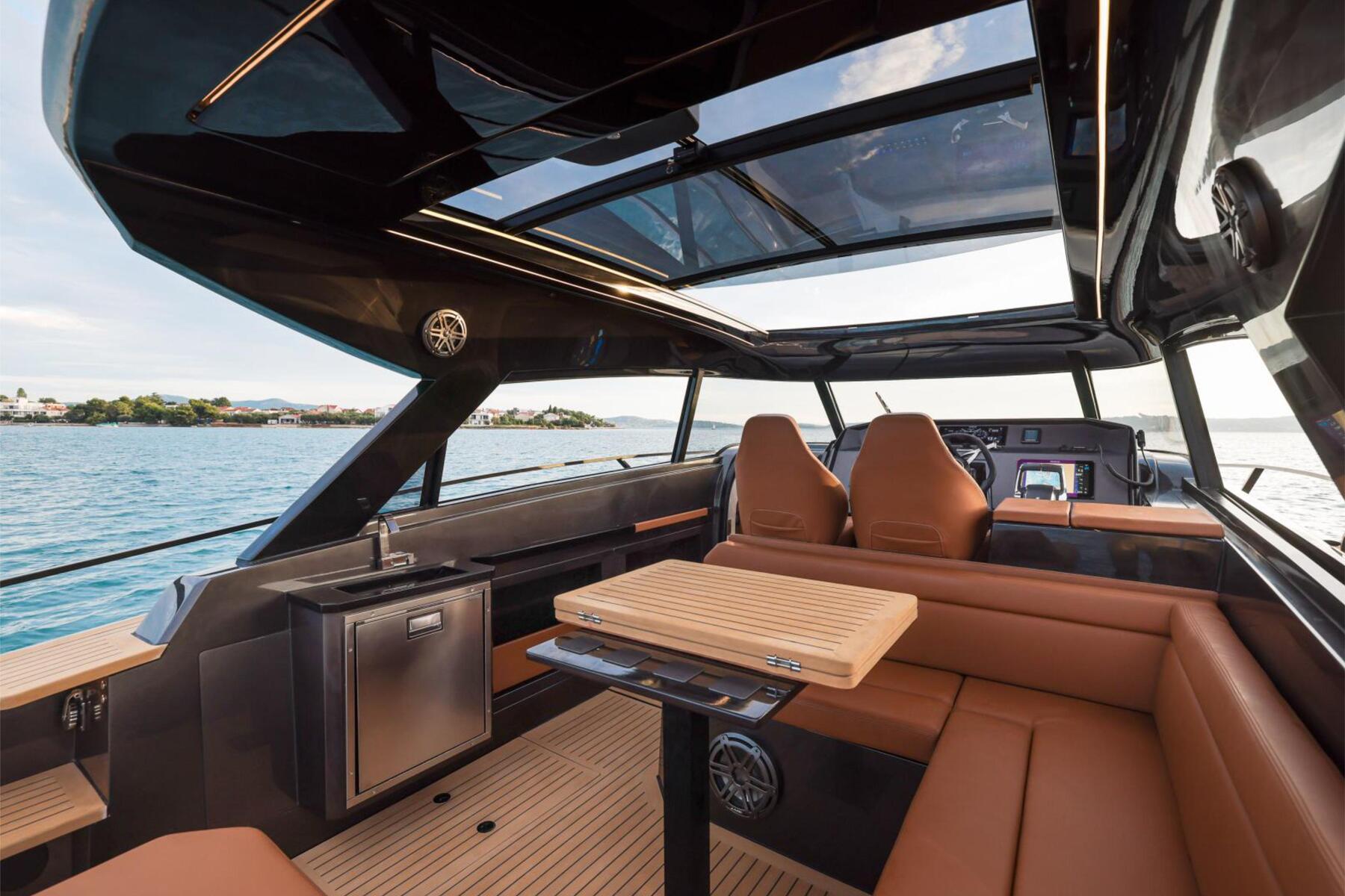 The Focus 3X is engineered to offer the best of both worlds: the openness of an open boat with the option for privacy. Key to this are the wide electric side windows, allowing for an instant transformation from an enclosed space to an open experience at a button's press.