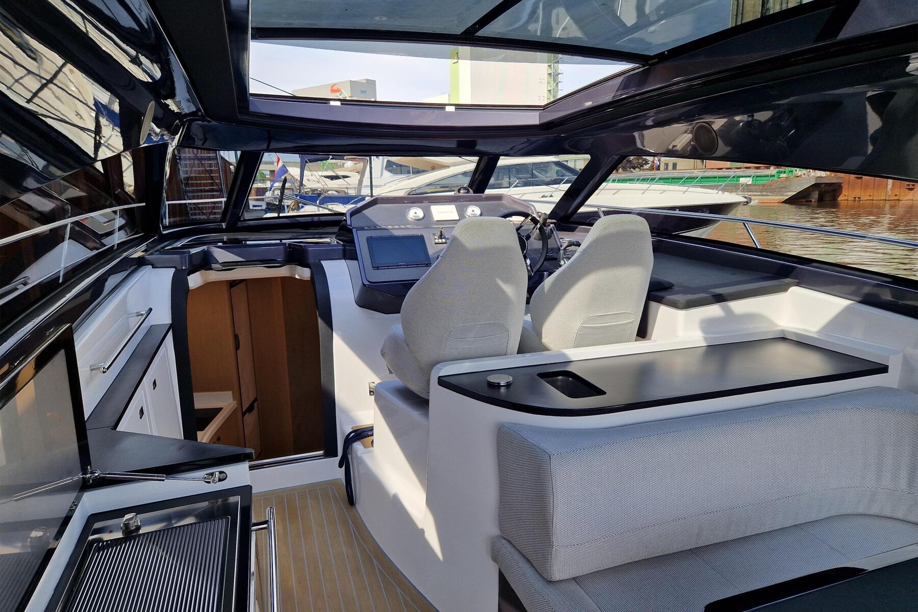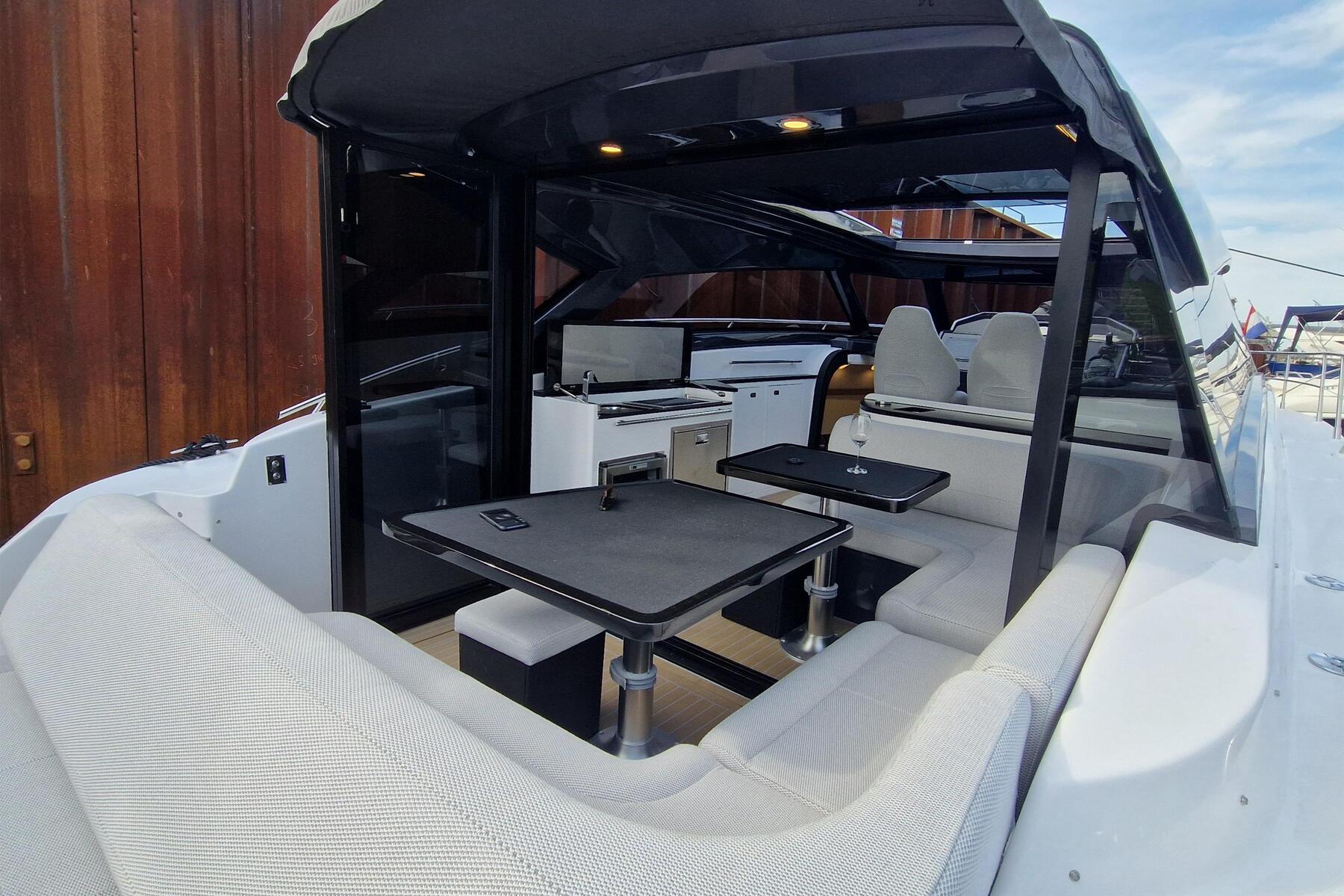 It is currently in dry storage inside the Focus Motor Yachts headquarters facility in Wanssum, The Netherlands.