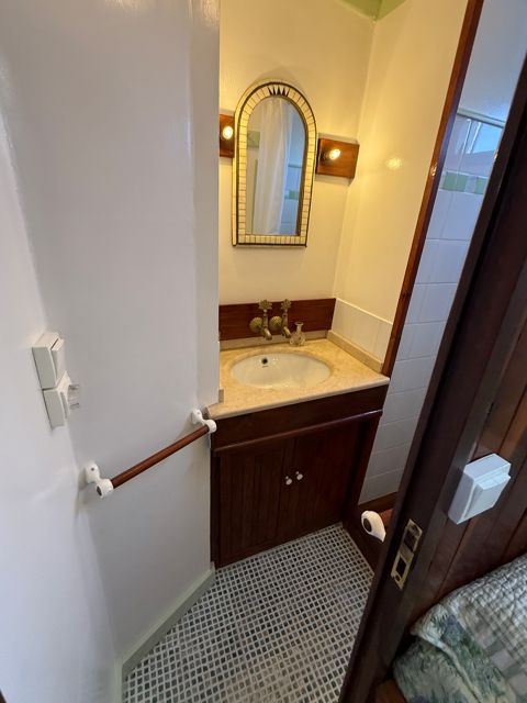 Le moteur, un GM Detroit 6 cylindre 2 temps diesel, très solide et économique, a été totalement reconstruit à neuf. C'est une "maison" sur l'eau avec tous les équipements de navigation hauturière.