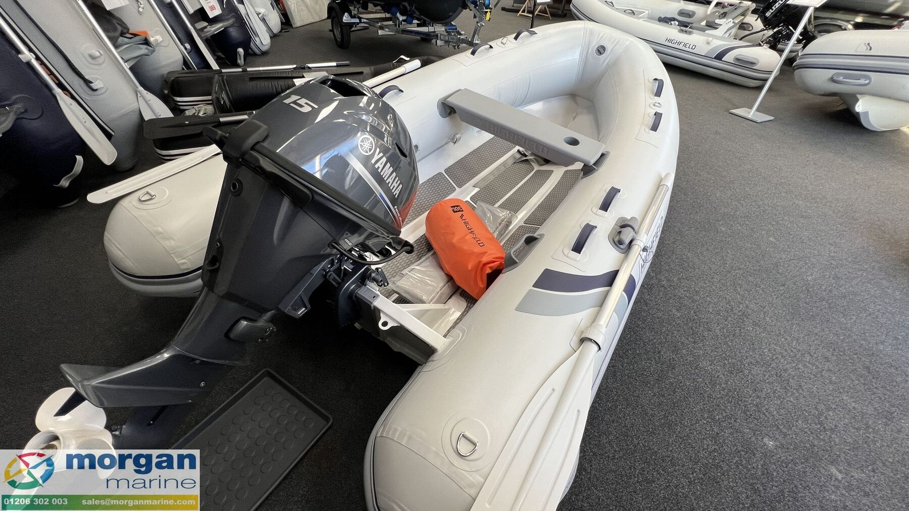 Highfield UL 310 (Ultralite) aluminium RIB with Valmex PVC tubes - people capacity 5+1. Fitted with a Yamaha F15 CMHS outboard. Their light weight make them a real alternative for those who may have chosen a soft bottom tender in the past but would prefer a hard hull for its performance. Ultralite tenders are roomy and strong, yet light and easy to transport. These little boats can be launched and recovered by a single man and are easy to be transported on a roof rack. You will be impressed by their obvious quality level. The excellence of the finish only compares the detail of the ergonomics. The simple layout is combined with an uncluttered design and numerous standard accessories complete the picture. This is a brilliant rib for all of the family offering plenty of seating, high equipment level and great performance. Design category C. Please note images shown may not match specification.