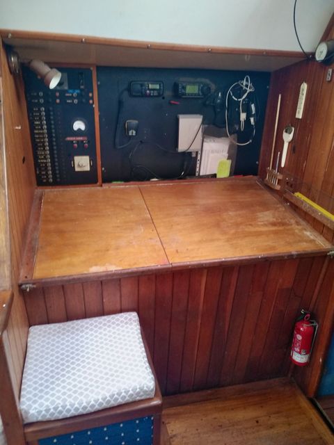L’électronique de navigation comprend une BLU Icom équipée d’un Pactor pour l’envoi de mails et la réception de fichiers GRIB en mer, une VHF Navicom DSC, un AIS SR161, un GPS Garmin 128 complété par un GPSMAP 276C, un pilote automatique Raytheon ST6000, un radar Raytheon Pathfinder ainsi qu’un sondeur et un anémomètre Raymarine.