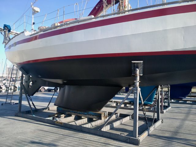 El aparejo incluye un mástil Francespar de 15 metros, jarcia firme ACMO en acero inoxidable, una mayor full-batten en buen estado, un génova de 50 m² también en excelente estado, una trinqueta casi nueva y un tormentín nunca utilizado. Todas las cadeneras son de acero inoxidable y el aparejo está dimensionado para navegación oceánica exigente.