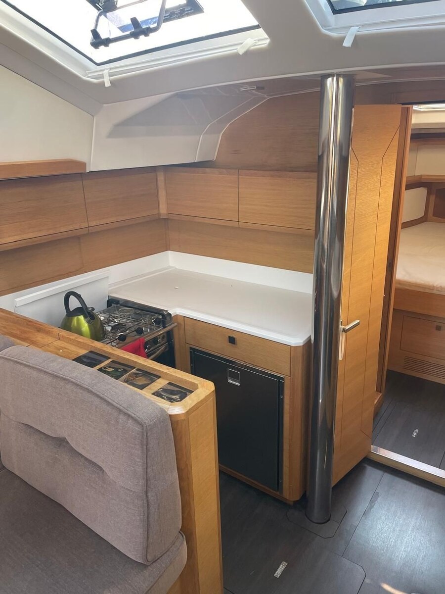 The newly designed interior offers a raised level (semi-deck saloon), a galley at the front of the main bulkhead and more space in the cabins.