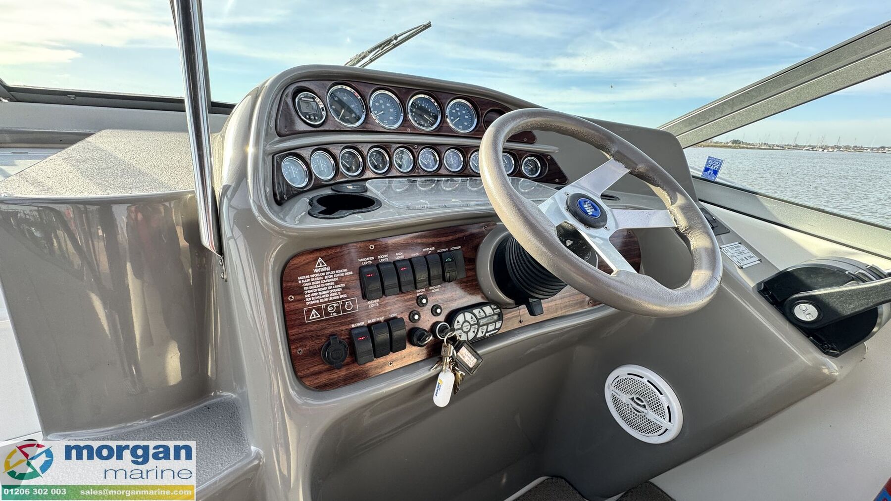 Just arrived at Morgan Marine, this 2001 Four Winns 298 Vista is powered by twin Volvo Penta 4.3 V6 250hp inboard petrol engines with reliable stern drives. She has been lovingly cared for by her current owner and has been used exclusively on freshwater since new, helping to preserve her excellent overall condition. This model boasts an innovative lounge, a uniquely sculpted aft cockpit, and a built-in entertainment centre, making her ideal for relaxing or socialising on the water. The cockpit canopy was replaced three years ago, and the upholstery to both the upper and lower decks has been recently renewed, giving the boat a fresh and well-presented appearance throughout. Inside, the cabin offers comfortable and gracious accommodation with two double berths and a dinette that converts into a large single berth. A spacious side galley and generous cockpit seating make her perfectly suited for weekend cruising or longer stays aboard. With a good service history and an impressive specification, this is a fantastic opportunity to own a well-maintained and versatile cruiser. Early viewing is highly recommended!