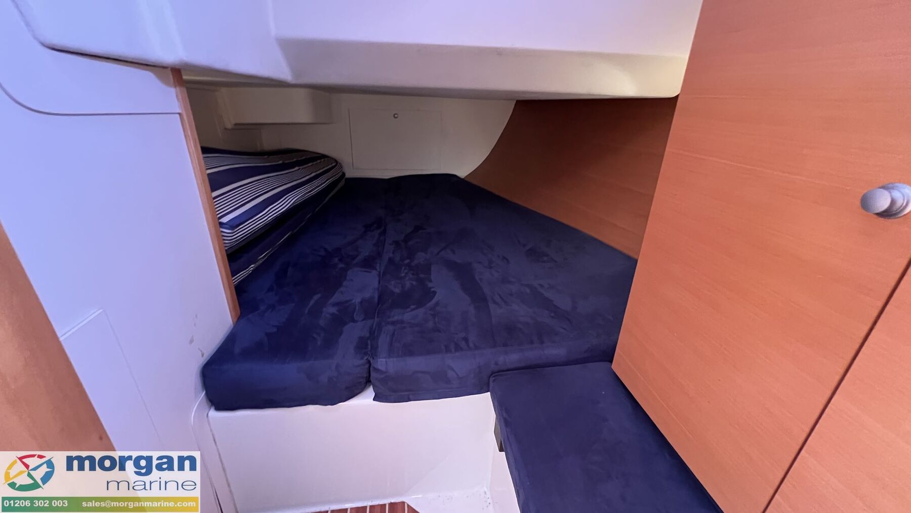 Deck: GRP hull. Fin keel - performance composite iron lead keel. Stainless Steel keel bolts. Fenders and lines. Bow fender. Seago 4 person life raft. Original standing rigging with regular inspection. Running rigging updated on a as needed basis. Full cockpit enclosure (2023). Main sail with cover (2017). Self tacking jib. 2x electric winches. 130 percent Genoa. Spinnaker and snuffer pole. Steps to mast. Bimini frame with cover. Stainless Steel wire guard rails. Pushpit and pulpit. Anchor locker with electric windlass, anchor, chain and rope. Bow roller. Stainless Steel mooring cleats. Spray hood. Boarding ladder. Deck handles. Life horseshoe ring. Teak decking on cockpit.