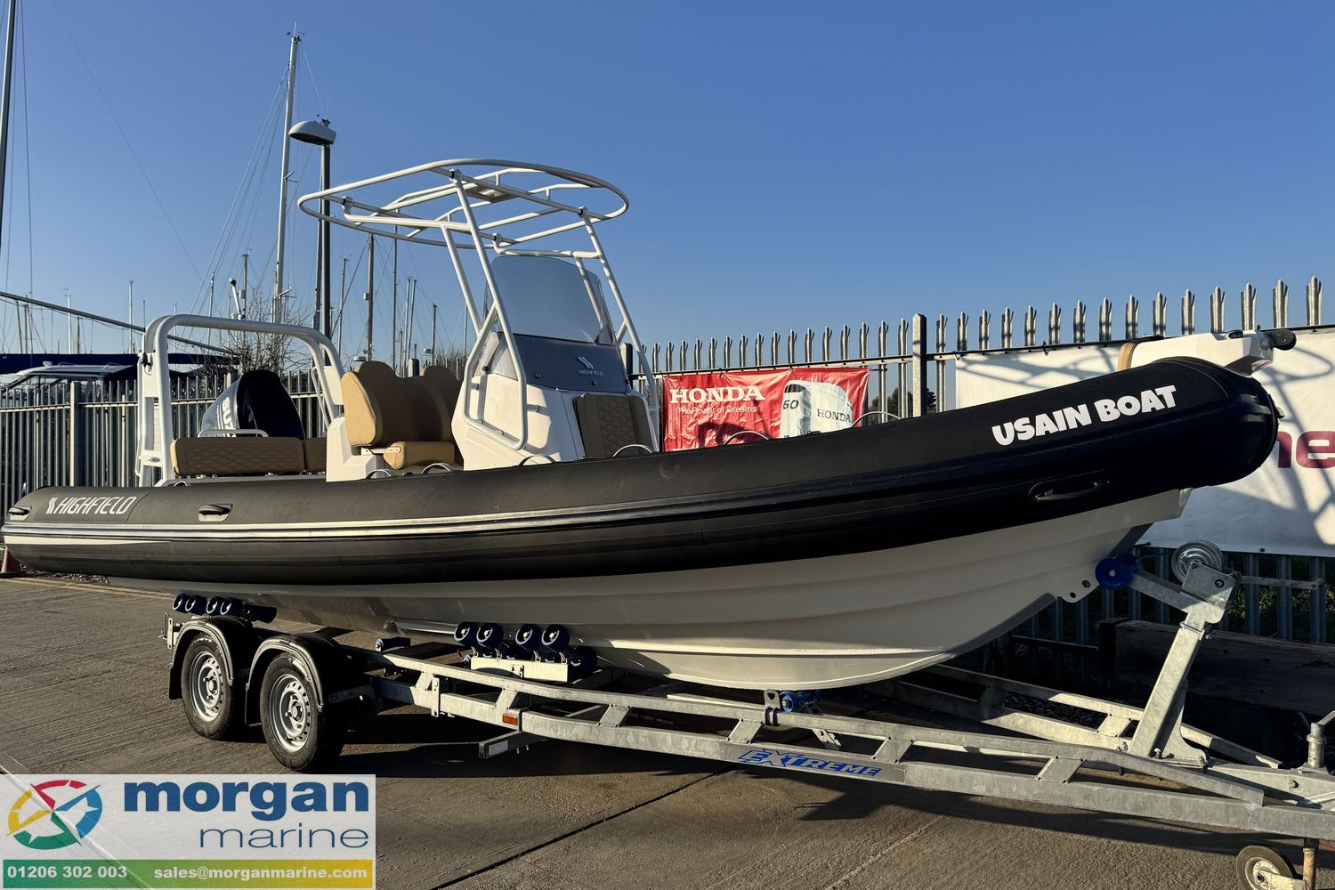 2023 Highfield Sport 700 Rib package with Suzuki DF200 APX DBW outboard, fully loaded with electronics, and Extreme EXT2400 road trailer. This rib is ready to hit the water with a capacity of 13 people. Expect to see speeds of circa 45 knots! This full package is a great boat for the family, days out and water sports. It is versatile and tough while pleasing on the eye. You know you are in safe hands within this Sport 700. This Highfield Sport 700 oozes quality from its fixtures and fittings, to its impressive 26 degree deadrise hull. Class leading handling and sea keeping will keep you on the plane when others have to slow down. Equipped with Garmin Chartplotter, Garmin VHF radio, digital gauges, and fusion audio system. Other features include: A-frame, Aluminium T-top, Overall mooring cover and Bolster 950 seating, Lets get you on the water in 2025!
