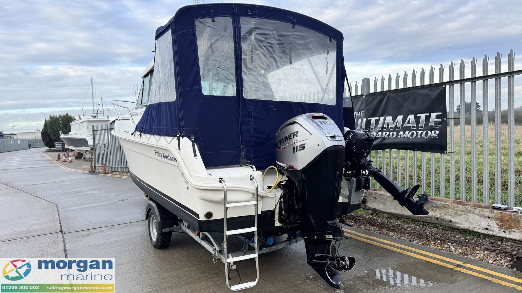 Just arrived at Morgan Marine, this 2004 Jeanneau Merry Fisher 625 is a superb example of a well cared for and highly specified cruiser/fisher, ideal for both relaxed family outings and serious fishing trips. Powered by a 2017 Mariner F115 outboard with approximately 474 hours, the boat offers reliable performance and efficiency, with the added reassurance of a Tohatsu 6hp auxiliary outboard for peace of mind. This Merry Fisher benefits from an impressive electronics package including Raymarine Dragonfly 4 and DS400x fish finders, a Standard Horizon CP180 5-inch chart plotter, JRC LCD 1000 MK II radar, and an Icom ship-to-shore VHF radio, making her extremely capable for coastal navigation and fishing. On deck, the large cockpit features bench seating with cushions, rod holders, electric trim tabs, and an electric windlass complete with anchor, chain, and rope. A full blue enclosed canopy provides excellent protection from the elements too! Below, the cuddy cabin offers two berths and a sea toilet, while the compact galley is equipped with a sink, storage, and stove. Additional features include shore power, solar panels with battery charger, and a 2024 Snipe 1600 roller trailer, making her perfectly suited to Morgan Marine’s park and ride convenience. A versatile and turnkey package ready to be enjoyed immediately.