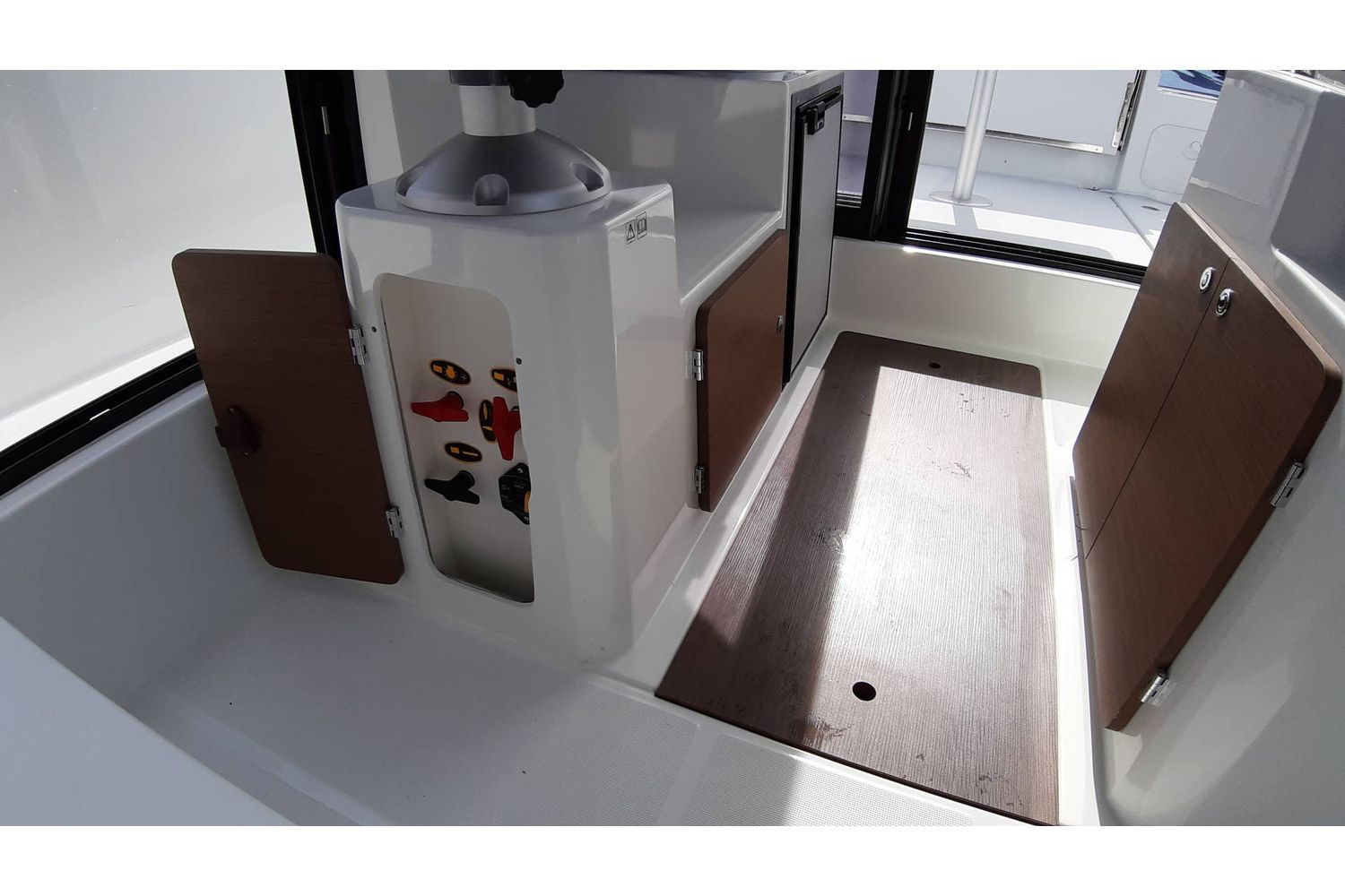 Machinery: Yamaha F250 NSB X – Steer By Wire outboard engine. Hydraulic steering. Bow thruster. Pressurised fresh water system, water tank, cockpit shower, tap in galley, tap in toilet compartment. Volcano engine lock. Manual and electric bilge pumps. Fuel capacity: 280L (with outside fill). Water capacity: 100L.