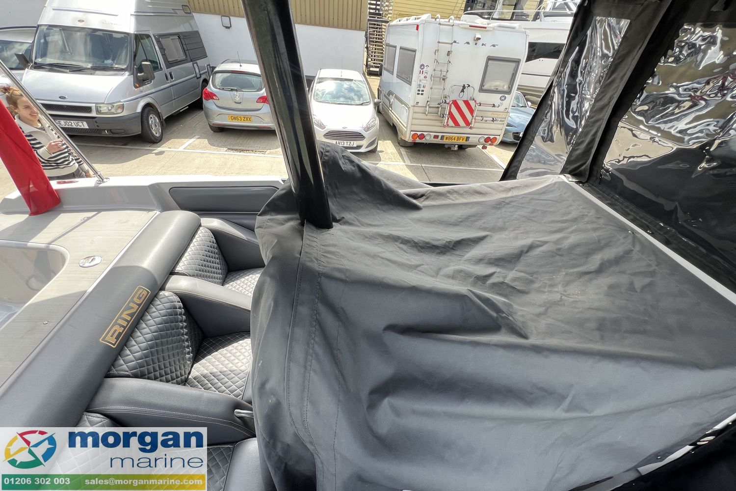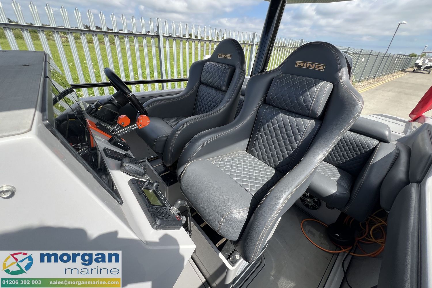 2019 Ring Ranger 25 fitted with a 2021 Mercury V8 225 XS. Offering blistering performance this open version of the Ring 25 Sports delivers luxury and comfort for family boating, yet loses none of the performance with the hull being identical to the sports boat version. Huge Specification to include Mercury V8 225 XS engine, triple 12 inch Garmin Chart plotters with Empirbus electronic switching system, Ring Racing high back helm seats, rear bench seat, forward sunbed / seating area, full enclosure canopy, Seadek flooring throughout, Vengeance console with low profile screen and storage, USB charger, LED nav lights, Stainless Steel fold down cleats, Livorsi racing throttle controls, rear racing bolster seats with Skydex shock mitigation cushions, shore power, hydraulic height adjustable dining table, Vengeance console with low profile windscreen, electric head in console with holding tank and basin, Extended vengeance T-top with electric sunroof, Fusion audio system, Garmin VHF radio with AIS, ambient LED cockpit lighting, LED T-Top lighting, LED docking lights, swim platforms with extra long boarding ladder and carbon fibre grab handles, fresh water transom shower, bow anchor locker with anchor kit. A truly special boat offering fantastic performance and handling we are sure she wont be around long!