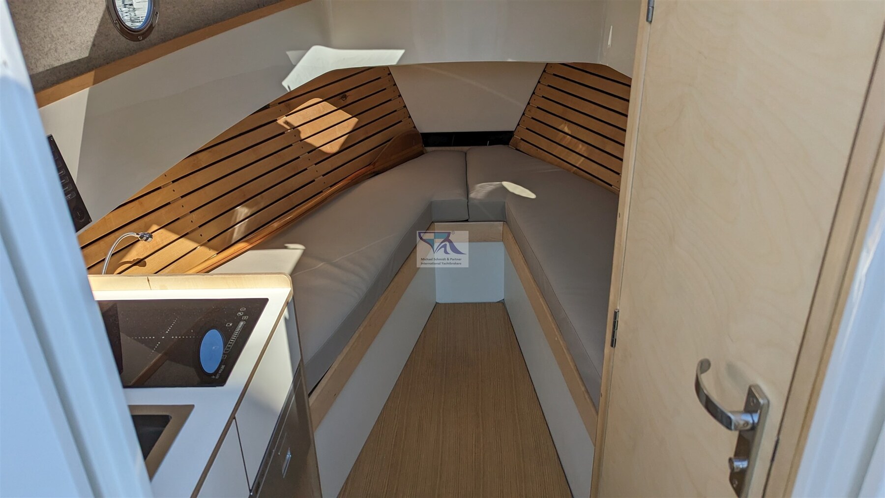 La barca è dotata di un sistema di propulsione elettrica di Fischer Panda e dispone di due batterie da 25,6 V con un caricabatterie rapido.