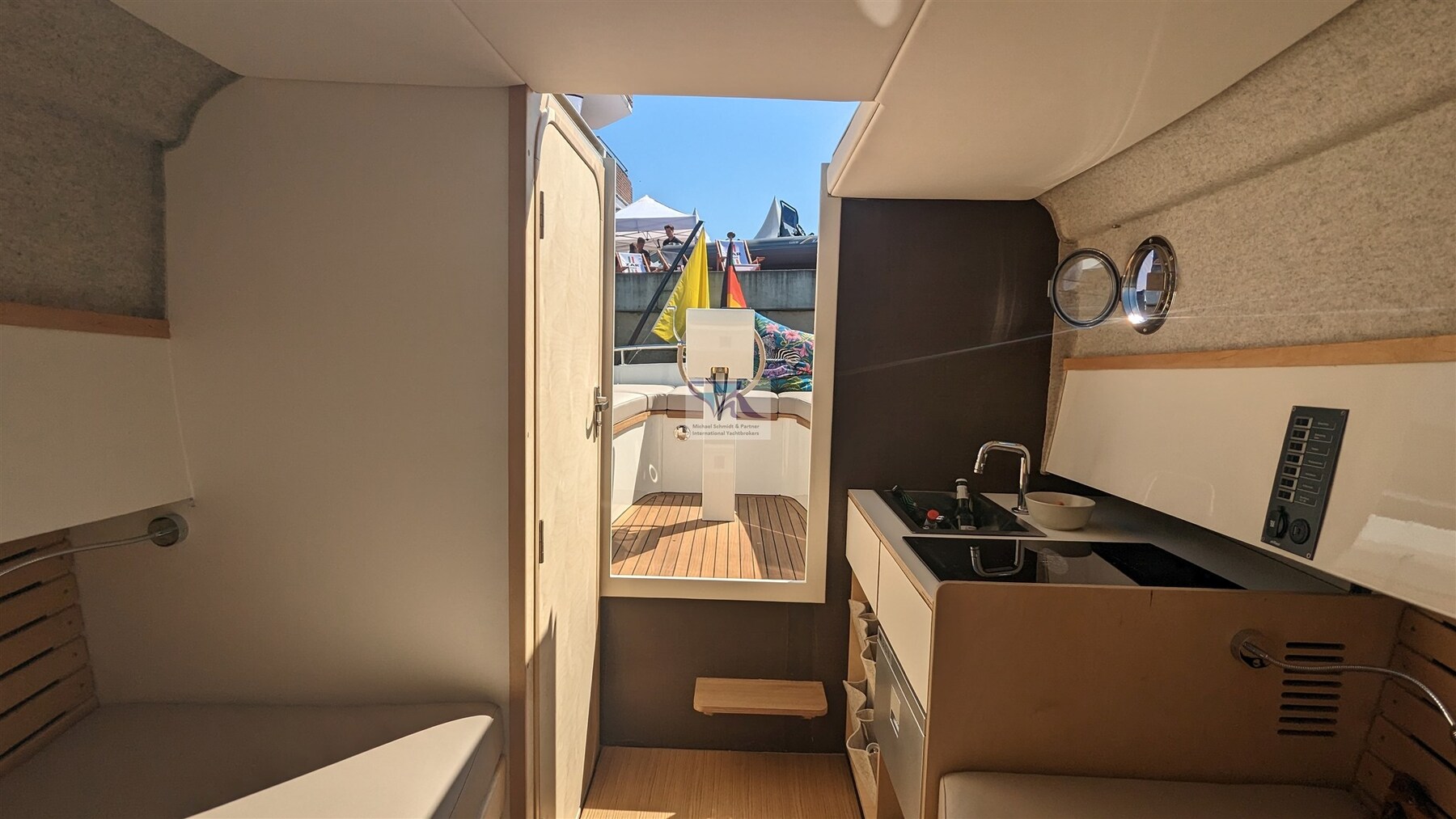 Galley, Burner (Induktionsherd 2000W), Refrigerator (12V).