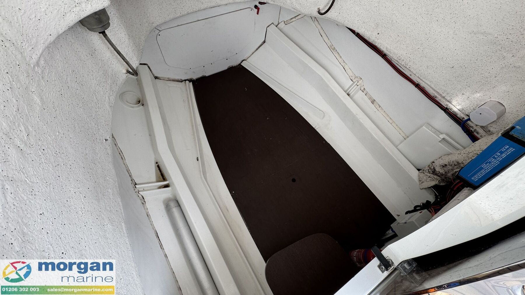 Cabin: Console with sliding plexi door to large storage area - perfect for the storage of boat cushions.