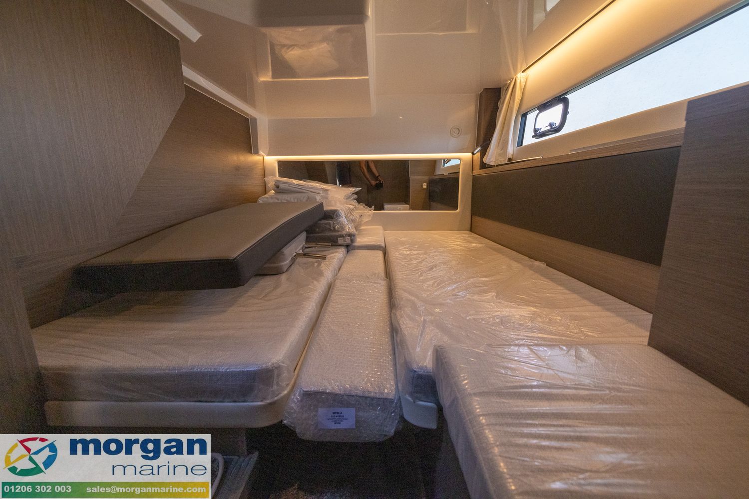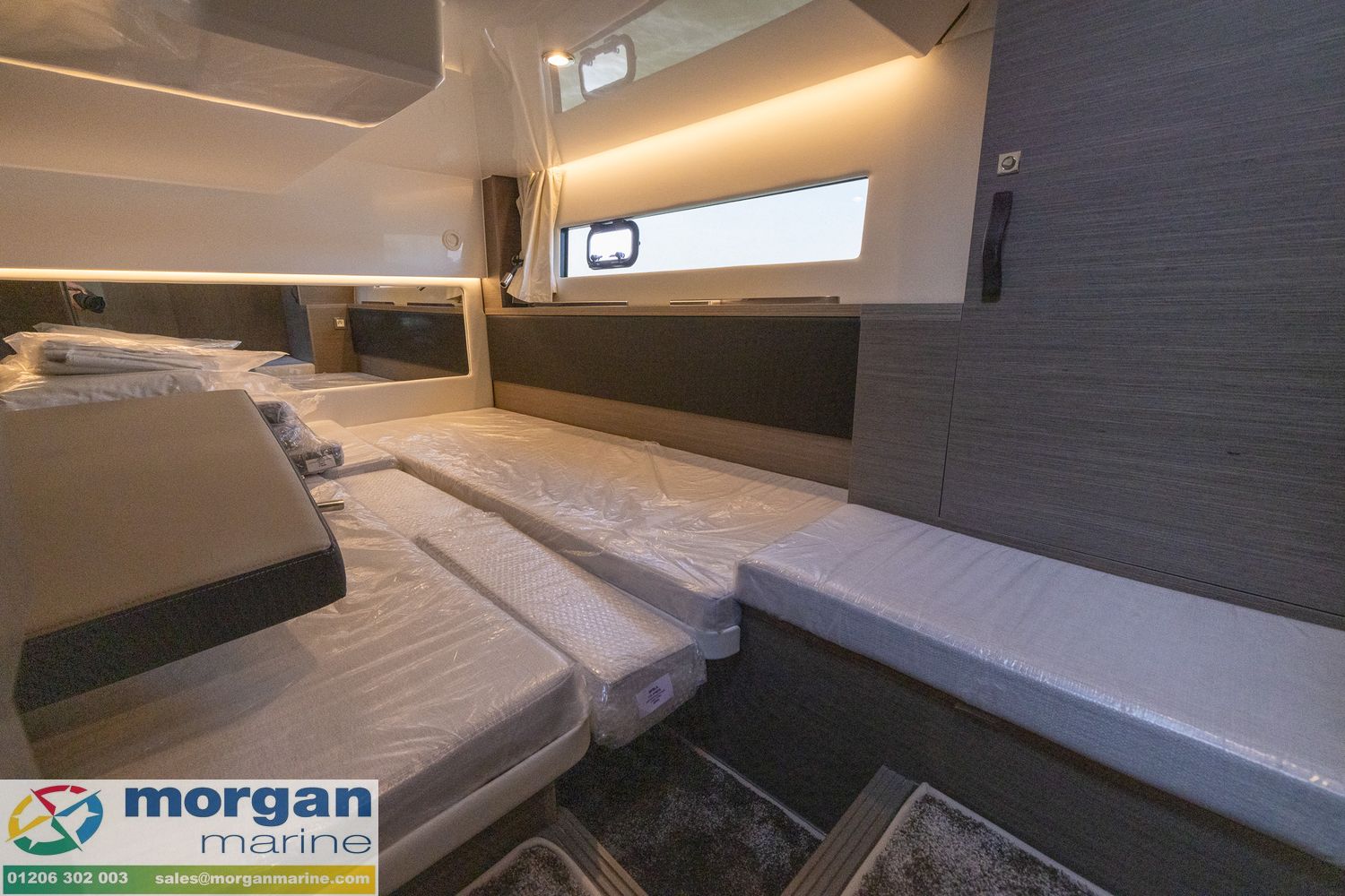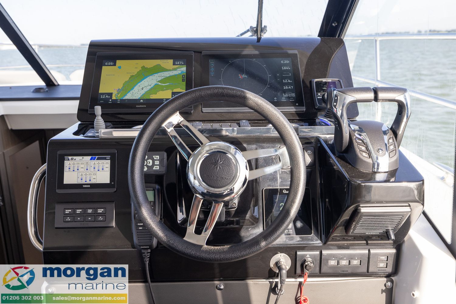 Jeanneau Merry Fisher 1295 Fly with triple Yamaha 300hp (white) - Steer By Wire and joystick - plus a saving of over £50,000 on the RRP. This boat has a fantastic specification - bursting with over £82,000 extras including Trim Level Premiere, aft closing canopy, bow thruster Garmin electronics, carpets, inverter and diesel heating - making one of the best best specified Merry Fisher 1295s. A fantastic wheelhouse fisher / cruiser with flybridge - great for day trips and overnight stays with 3 cabins (6 berths), galley (with electric stove + oven and pressurised hot water) and two toilet / shower compartments. Plenty of space onboard either in the large wheelhouse, the aft cockpit saloon, the bow sunpad or the flybridge with second helm position and full engine controls. Prepared + antifouled and complete with Morgan Marine handover. CE category B for 10 and C for 12. 2026 model year Jeanneau Merry Fisher 1295 Fly available to order for UK delivery - alternative specifications in stock at Morgan Marine. NB - library photos may not reflect specification of boat.