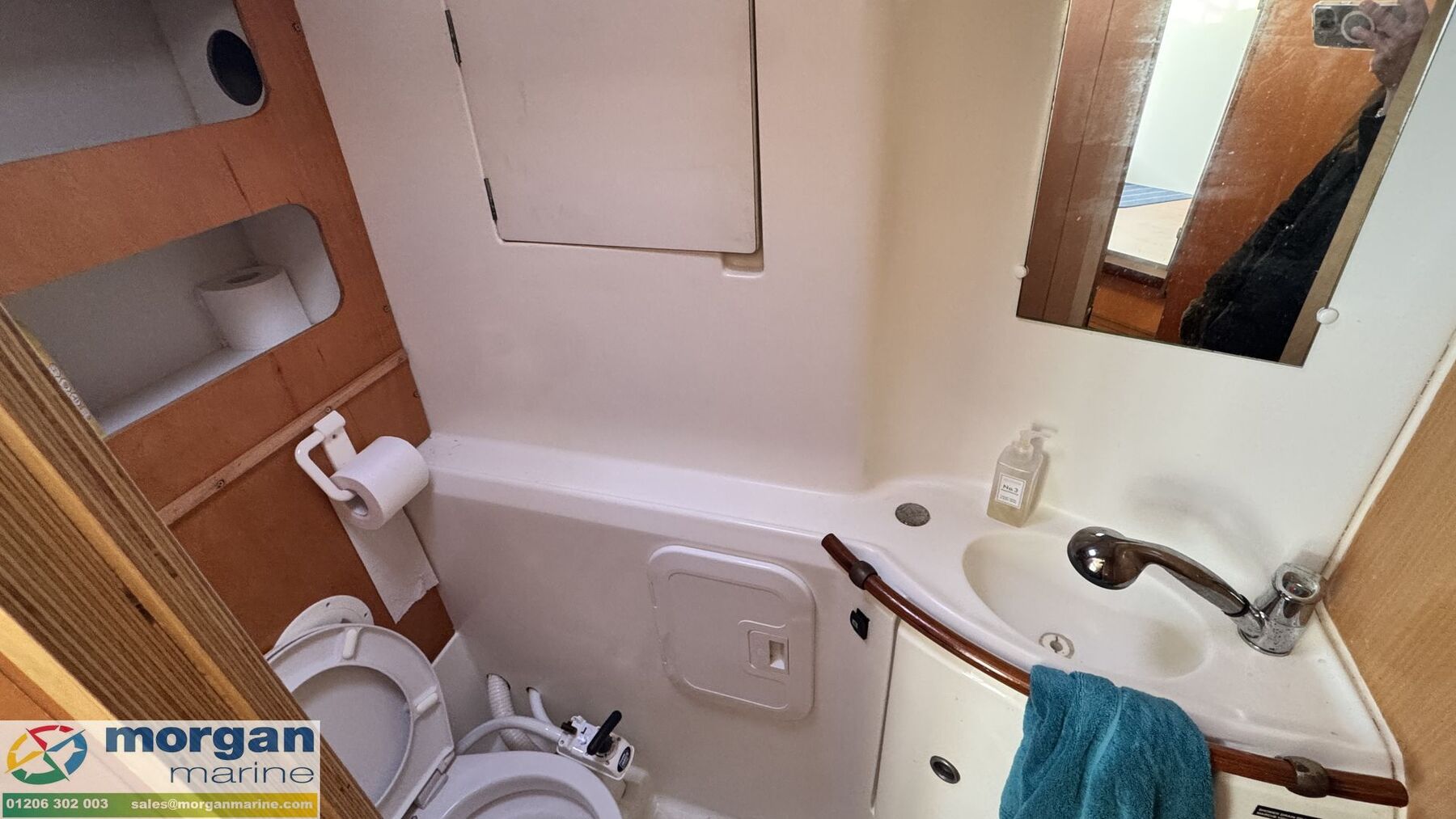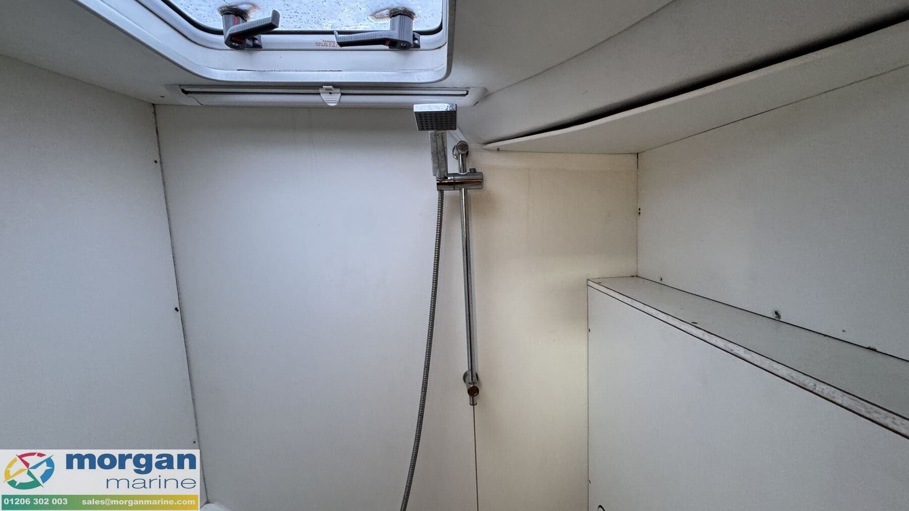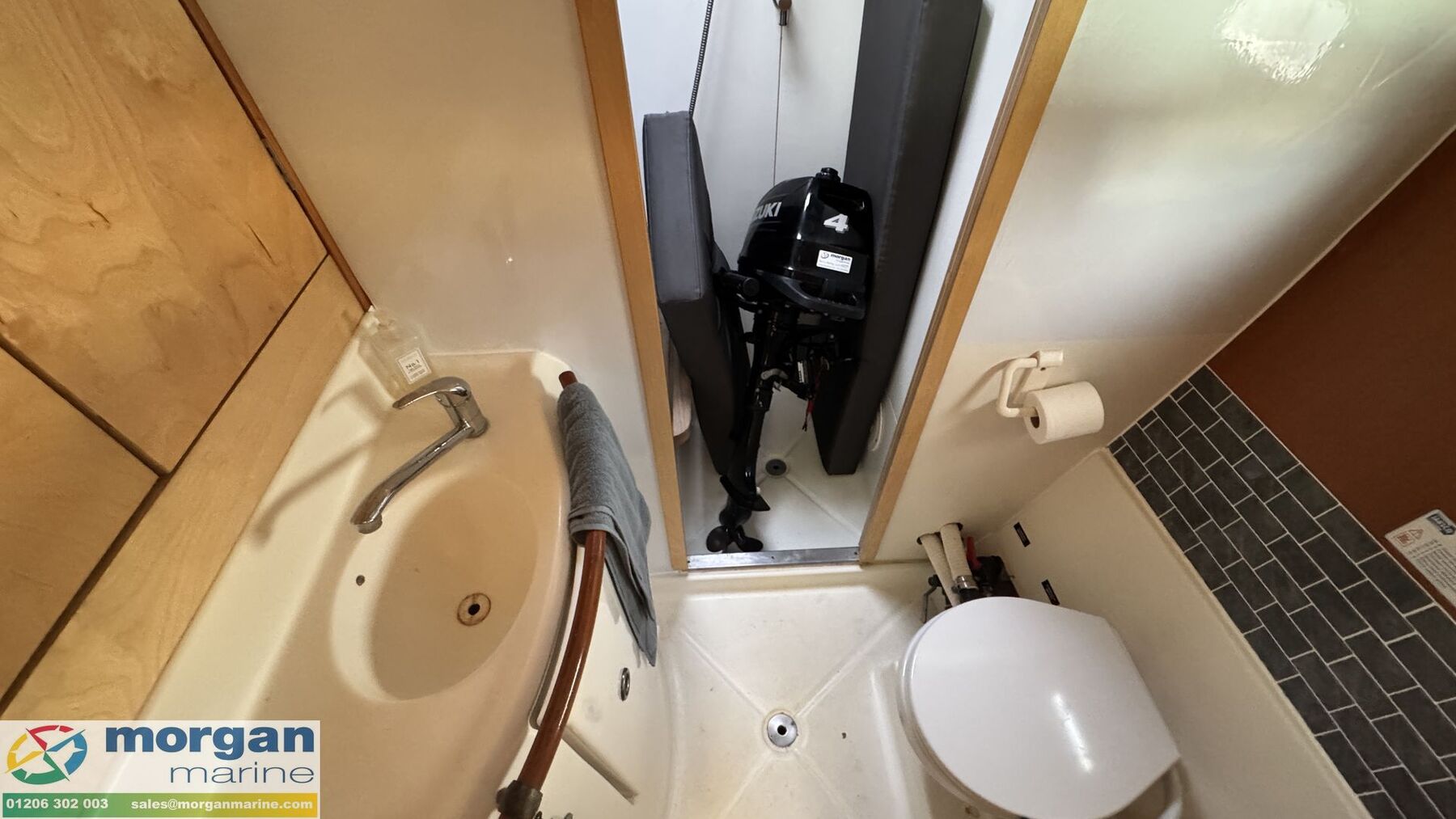 Cabin: Starboard side full double berth with storage and good amount of lighting. Starboard side toilet compartment and separate shower. Port side stern double berth with storage. Forward port side cabin with double berth. Port side toilet compartment with toilet and sink. Full size washing machine. New upholstery to saloon and curtains. Large galley area with upgraded worktop, sink, new gas burner and oven, lots of storage and fridge freezer. Upgraded 12v fridge compressor fan assist. Large saloon area with U-shaped cushioned seating converting into another double berth with all round windows. Upgraded hot water tank with 60L capacity. Chart table with engine controls and seat. 12v TV with DVD player. Never chartered!