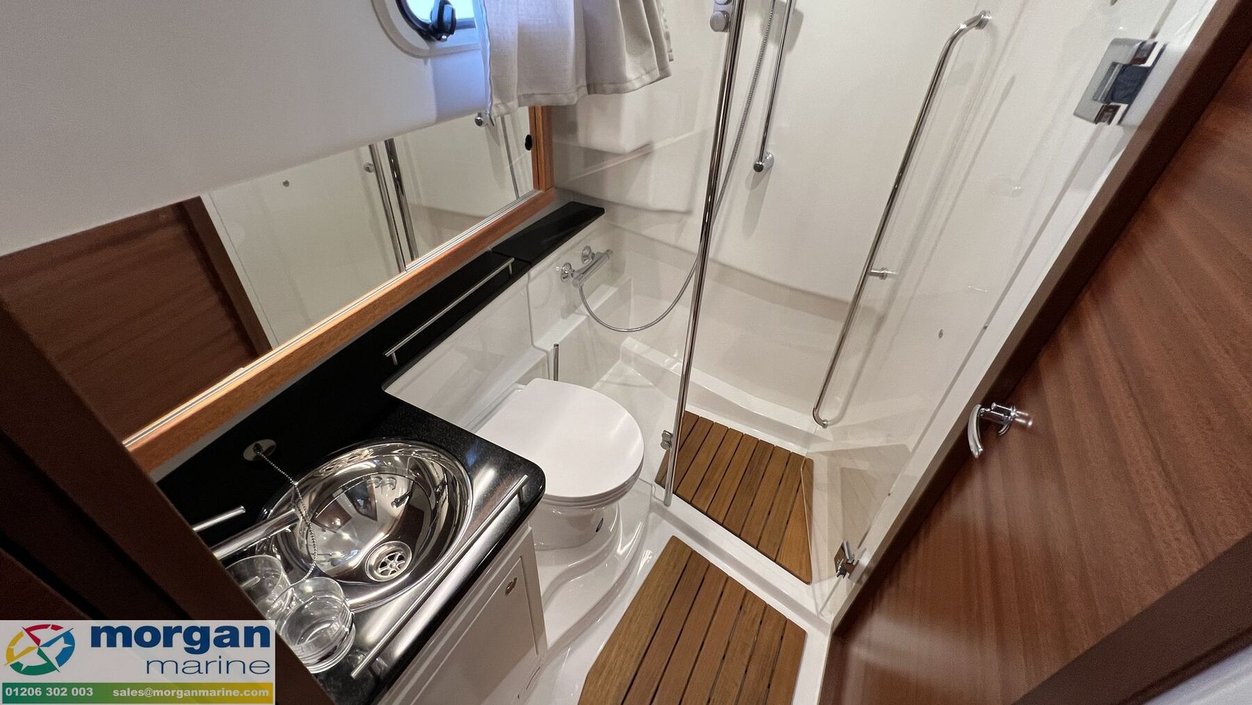 Machinery: Volvo Penta D6-440. Trim tabs for improved comfort. Twin rudders for better manoeuvrability. Quick BTQ180-55 stern thruster and bow thruster + remote. Ebersprächer D6 heater & defroster. Isotemp Spa 20L hot water system. Fuel capacity 700L. Water capacity: 270L. Hot water capacity: 20L. Waste capacity: 120L with electric pump out. Seafire automatic fire-fighting system. Manual and electric bilge pump. CE Category B.