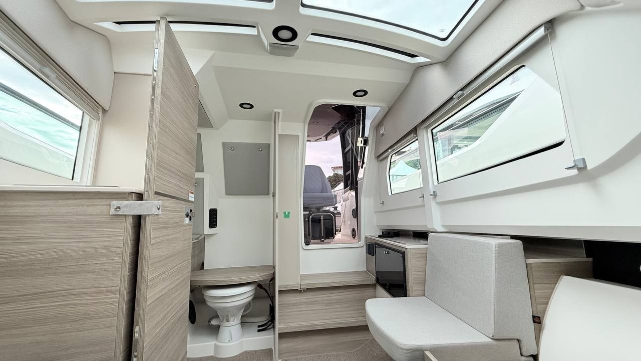 Questo Saxdor 320 GTO modello 2025 è in condizioni impeccabili, con pochissime ore di utilizzo. Lo scafo grigio abbinato alla tappezzeria blu Florida crea un contrasto elegante e moderno, ulteriormente valorizzato dalla pavimentazione in teak sintetico. Le murate abbattibili e la dinette trasformabile in un ampio prendisole rendono questo walkaround sportivo estremamente versatile: perfetto per crociere veloci a 30 nodi come per soste rilassanti in rada. Sottocoperta, una cabina matrimoniale di prua con WC elettrico separato garantisce comfort e privacy. A completare l’equipaggiamento, un impianto audio premium da prua a poppa con subwoofer e una piastra a induzione in coperta. Immediatamente disponibile, assolutamente da vedere.